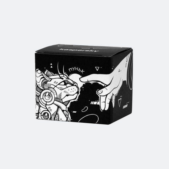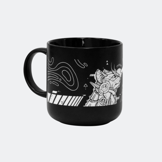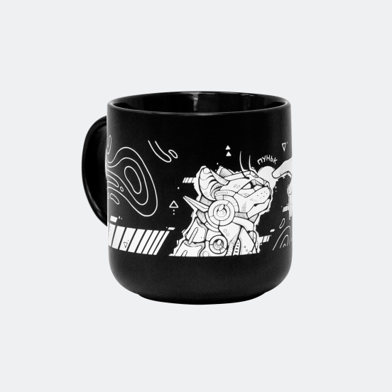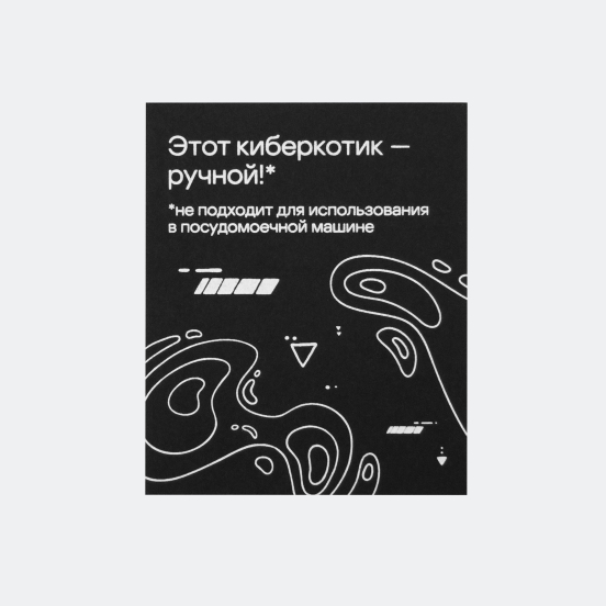 Кибер-кот – теперь на кружке! Выполнена из костяного фарфора. Внутри - глянцевая, снаружи - матовая.